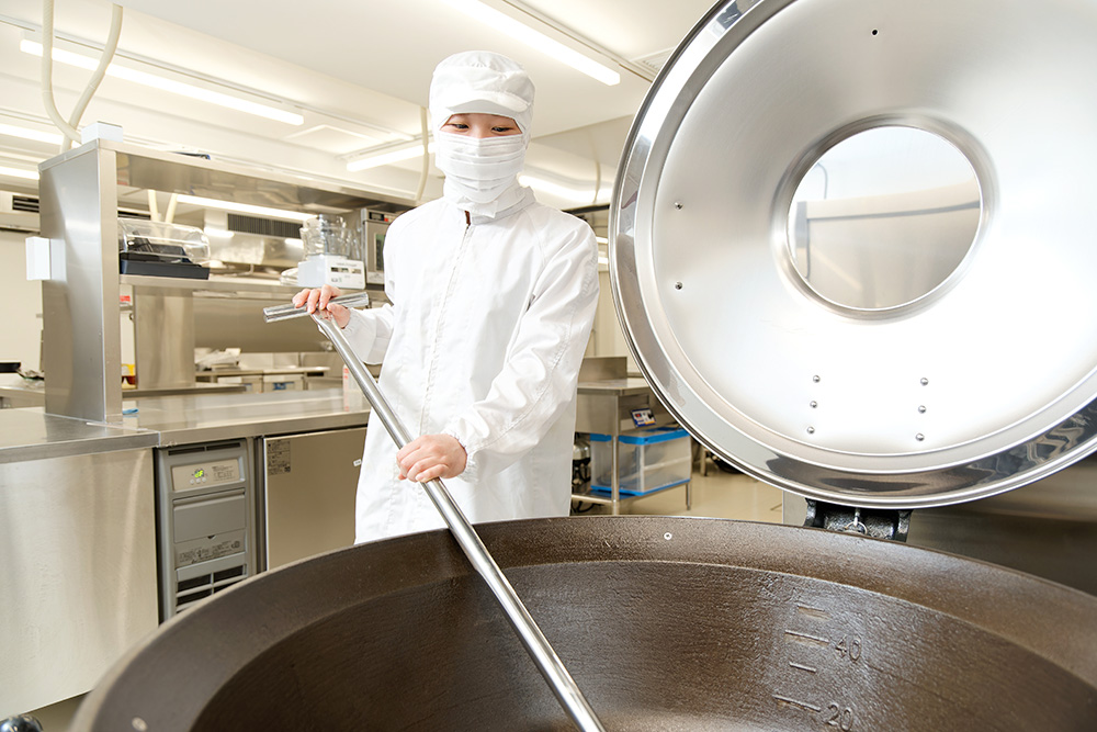 その日のメニューによって食品の分配、形成を行います。加熱調理をするにあたって中心温度が確実に基準値まで達しているかなどを確認します。