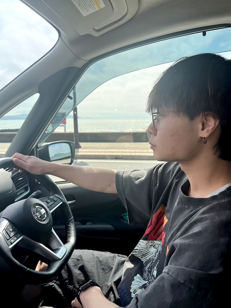 運転や食べることが好きなので、友達と少し遠くまでドライブにいったり、ラーメンやカフェに行くことが多いです。