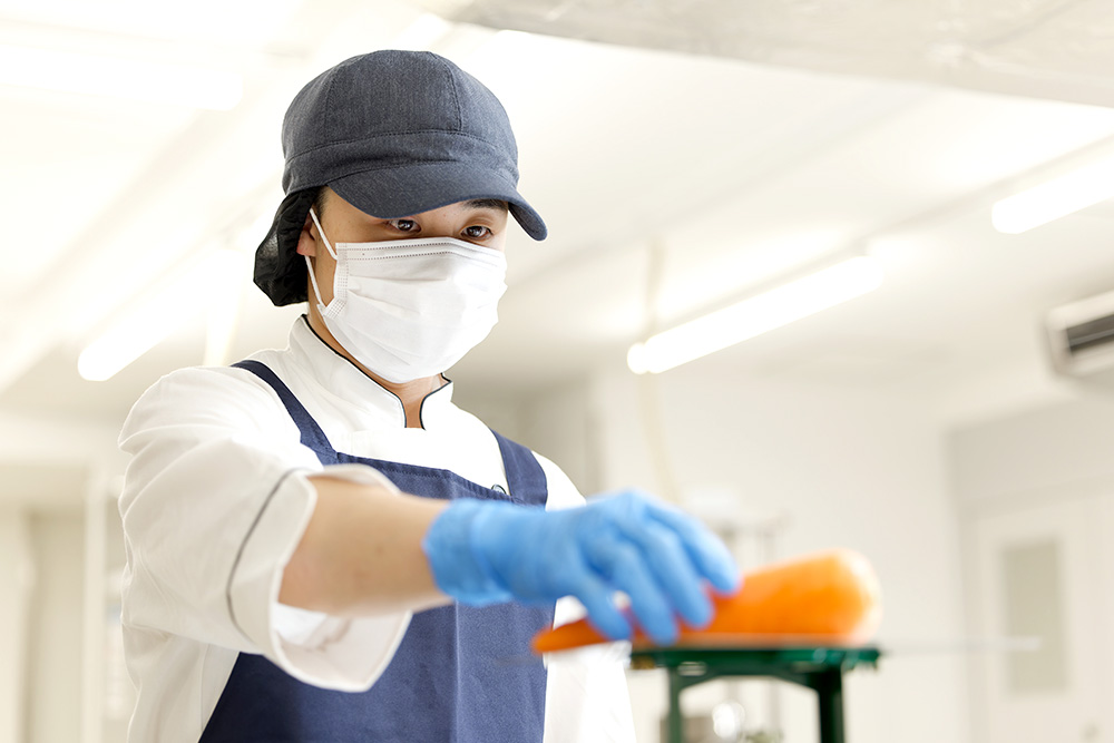 現在、サービス付き高齢者向け住宅の給食現場の管理栄養士として勤務しています。主な業務内容は、調理や仕込み、食材の検品・在庫管理、献立作成、発注業務、衛生および安全管理などです。中でも特に力を入れているのが、食形態やアレルギーなど、利用者様一人ひとりに合わせた個別対応の食事の提供と、献立作成、調理業務です。これらはまだ始めたばかりで勉強中ではありますが、日々実践を通して学びを深めています。利用者様や施設スタッフの方々から「美味しかった」「いつもありがとう」といった感謝の言葉をいただけることが何よりのやりがいであり、もっと美味しく安全な食事を提供できるよう努力を重ねています。分からないことがあるときには、経験豊富な先輩方から丁寧にアドバイスをいただけるため、安心して業務に取り組むことができ、毎日が学びと成長につながっています。